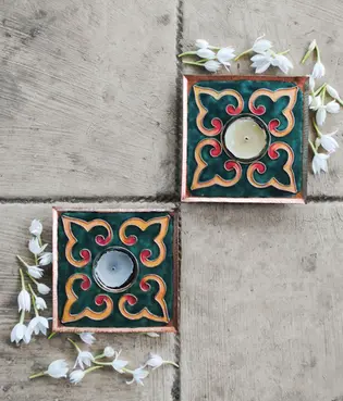 - Meenakari, the dying art of enameling on copper, now is used to create amazing wall plates using the same techniques. The artisans use leftover chips from tambat ali copper vessels to create wall plates, tea light holders, even modern jewelry